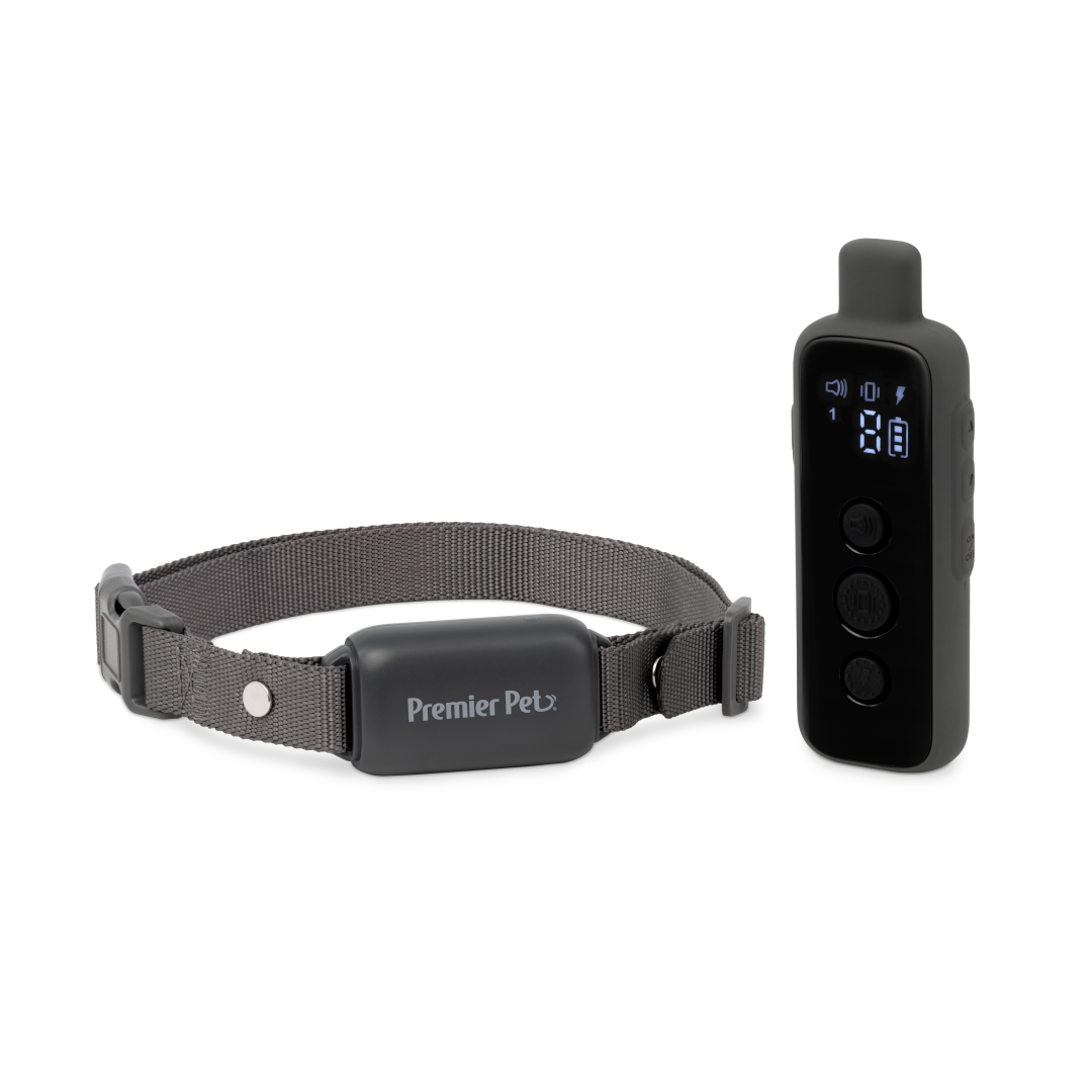 Introducing the Premier Pet™ 1000 Foot Trainer, a reliable solution to help you effectively correct unwanted behaviors in dogs of all sizes. This advanced training tool ensures clear communication and consistent enforcement of rules in a way that your dog can easily understand. With a user-friendly remote featuring an LCD display, you can tailor the training experience to your dog's specific needs with three safe modes: tone, vibration, and 16 levels of static stimulation. The rechargeable, waterproof collar includes an adjustable nylon strap, accommodating dogs with neck sizes up to 28”. Its durable and versatile design is perfect for off-leash walks around the park or long hikes with your dog. The low battery indicator and quick 2-hour recharge ensure your training sessions are never interrupted. Expandable to train up to two dogs with the purchase of an Add-A-Dog Collar, the Premier Pet™ 1000 Foot Trainer is the ultimate tool for dog owners who seek reliable and long-range training solutions.