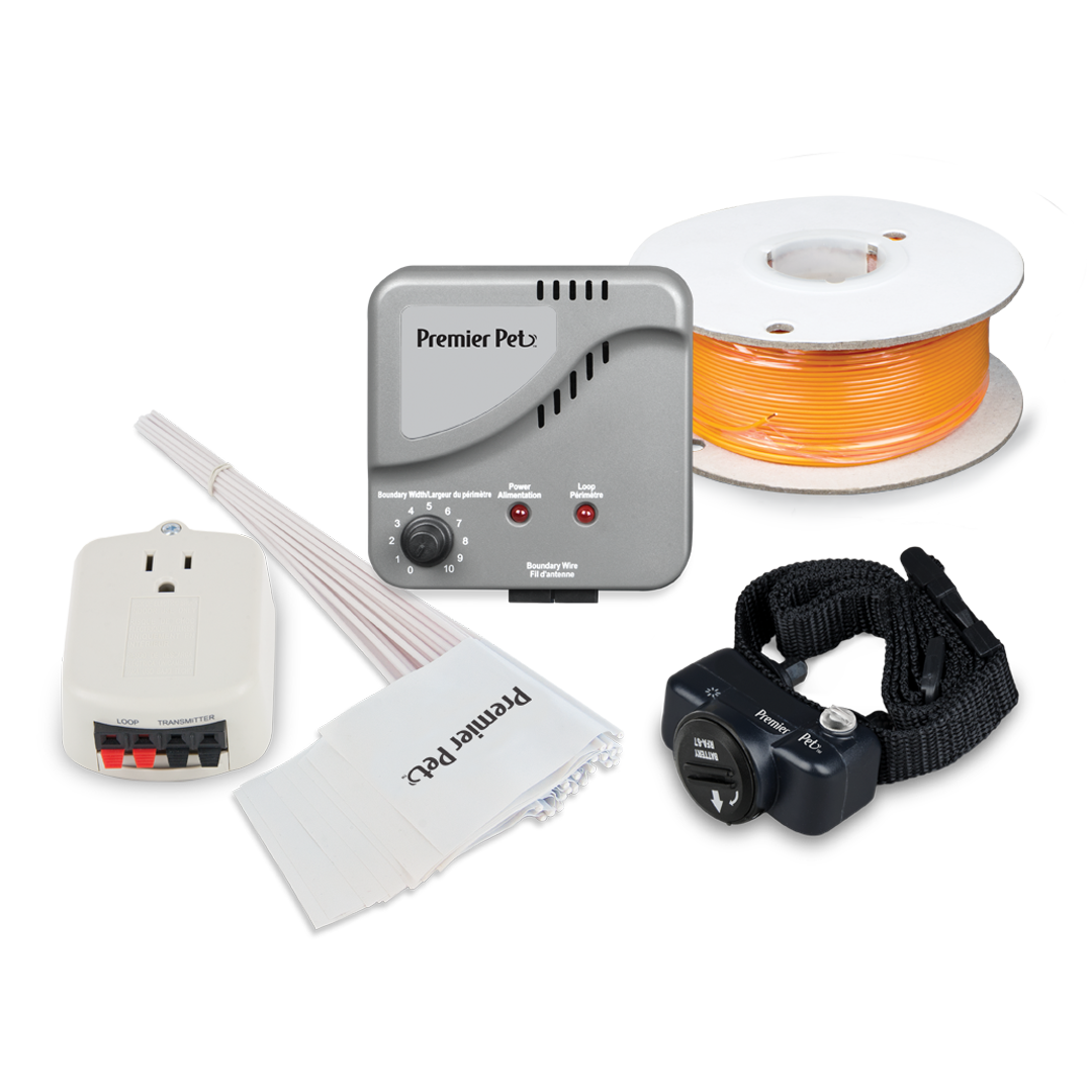The Premier Pet® In-Ground Fence keeps your dog safely in your yard with a customizable barrier that includes coverage up to 1/3 acre and is expandable up to 5 acres with the Premier Pet® Wire and Flag Expansion Set (GRFA-500). The barrier can be customized to contain your dog in your entire yard, a partial area of your yard, or to prevent access to certain areas, such as a garden or pool. The included waterproof receiver collar has a nylon strap that is adjustable up to 26”, making it a great fit for both smaller and larger dogs. A low battery indicator on the collar will alert you when the collar battery (GAC11-16351) should be replaced. The collar has 1 level of tone only for training and 4 adjustable levels of static correction so that you are able to choose which level works best for your dog. A safety time-out feature will stop correcting after 30 seconds should your dog get outside of the boundary zone. You also have the option of adding an unlimited number of dogs to the system with the Premier Pet In-Ground Add-A-Dog collar (GIG00-16920). Give your dog freedom to play and yourself peace of mind with the Premier Pet In-Ground Fence!