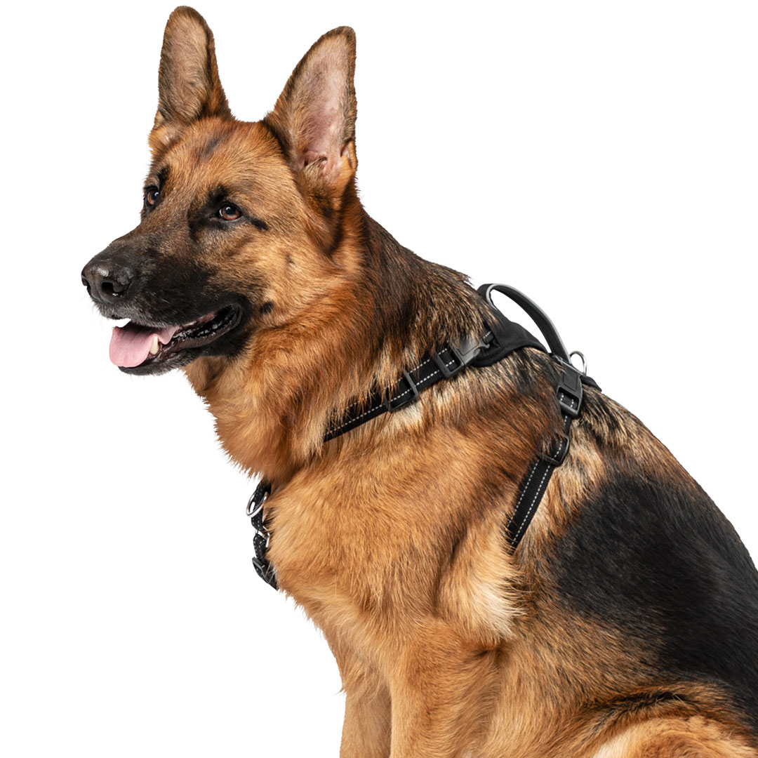 The Premier Pet® No Pull Comfort Harness is the perfect multi-functional harness, designed for maximum comfort, adjustability and safety. The harness can be used as a standard harness or easily transition to a no pull harness. It’s great for everyday use, including running or jogging. Reflective stitching and piping adds visibility in low light situations and the padded traffic handle is easy to grab when additional control is needed. Choose the best size for your dog by measuring the widest part of his/her rib cage and easily create a custom fit with the four adjustment points. The LARGE sized harness is best for dogs weighing 70+ lb. with a girth measuring 23” – 35”. For even more control, use with the Premier Pet® Multi-Functional Leash.