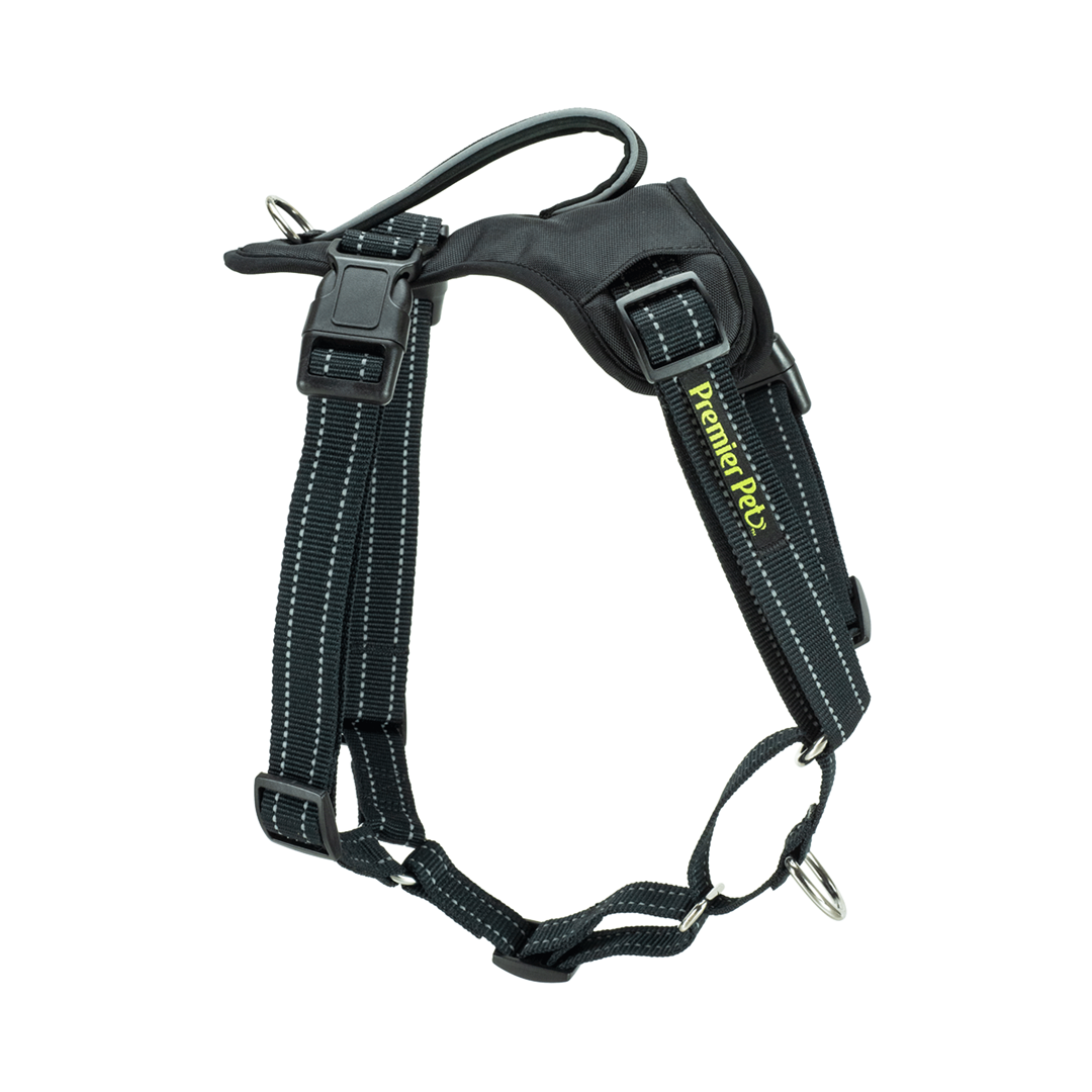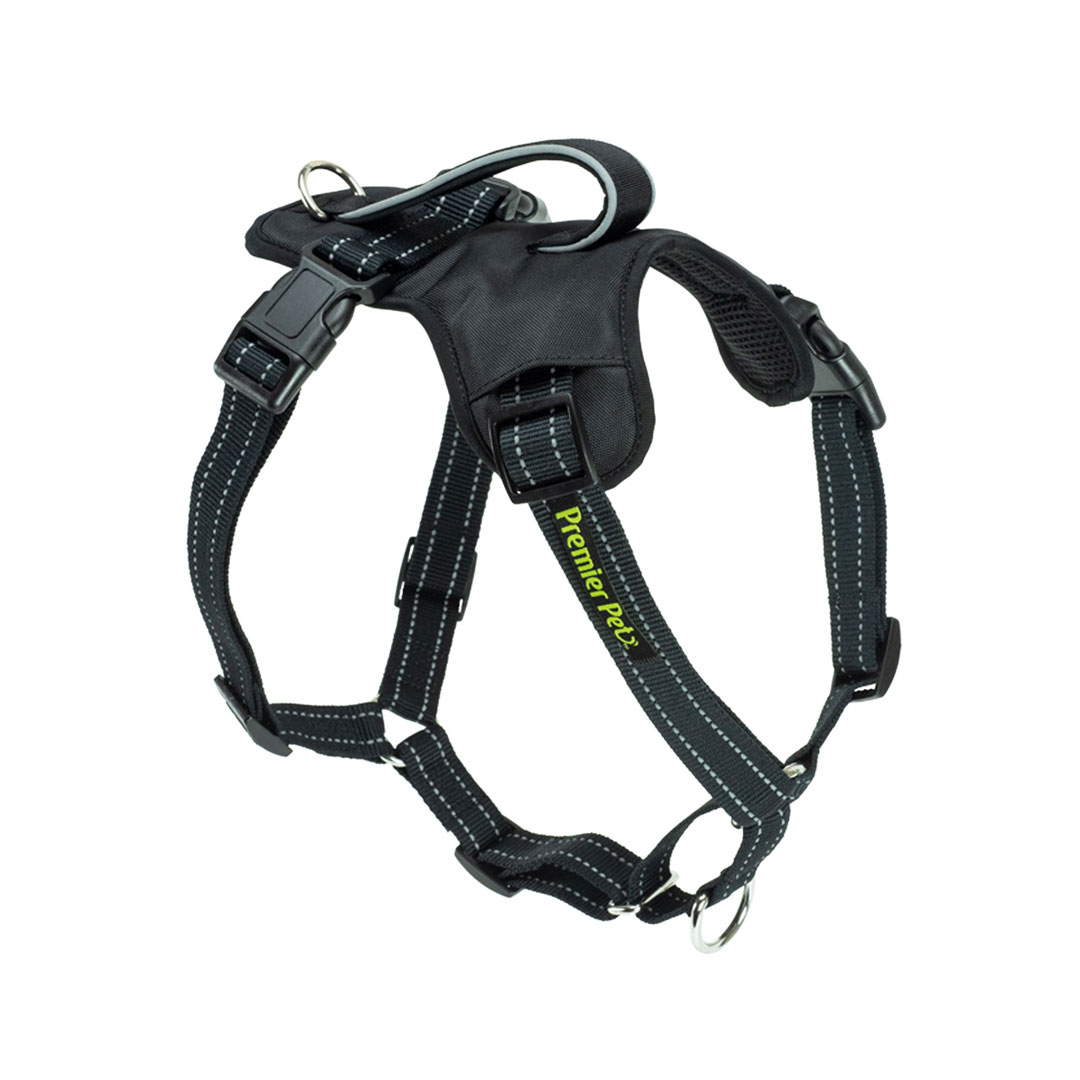 The Premier Pet® No Pull Comfort Harness is the perfect multi-functional harness, designed for maximum comfort, adjustability and safety. The harness can be used as a standard harness or easily transition to a no pull harness. It’s great for everyday use, including running or jogging. Reflective stitching and piping adds visibility in low light situations and the padded traffic handle is easy to grab when additional control is needed. Choose the best size for your dog by measuring the widest part of his/her rib cage and easily create a custom fit with the four adjustment points. The SMALL sized harness is best for dogs weighing 15 – 30 lb. with a girth measuring 18” – 25”. For even more control, use with the Premier Pet® Multi-Functional Leash.