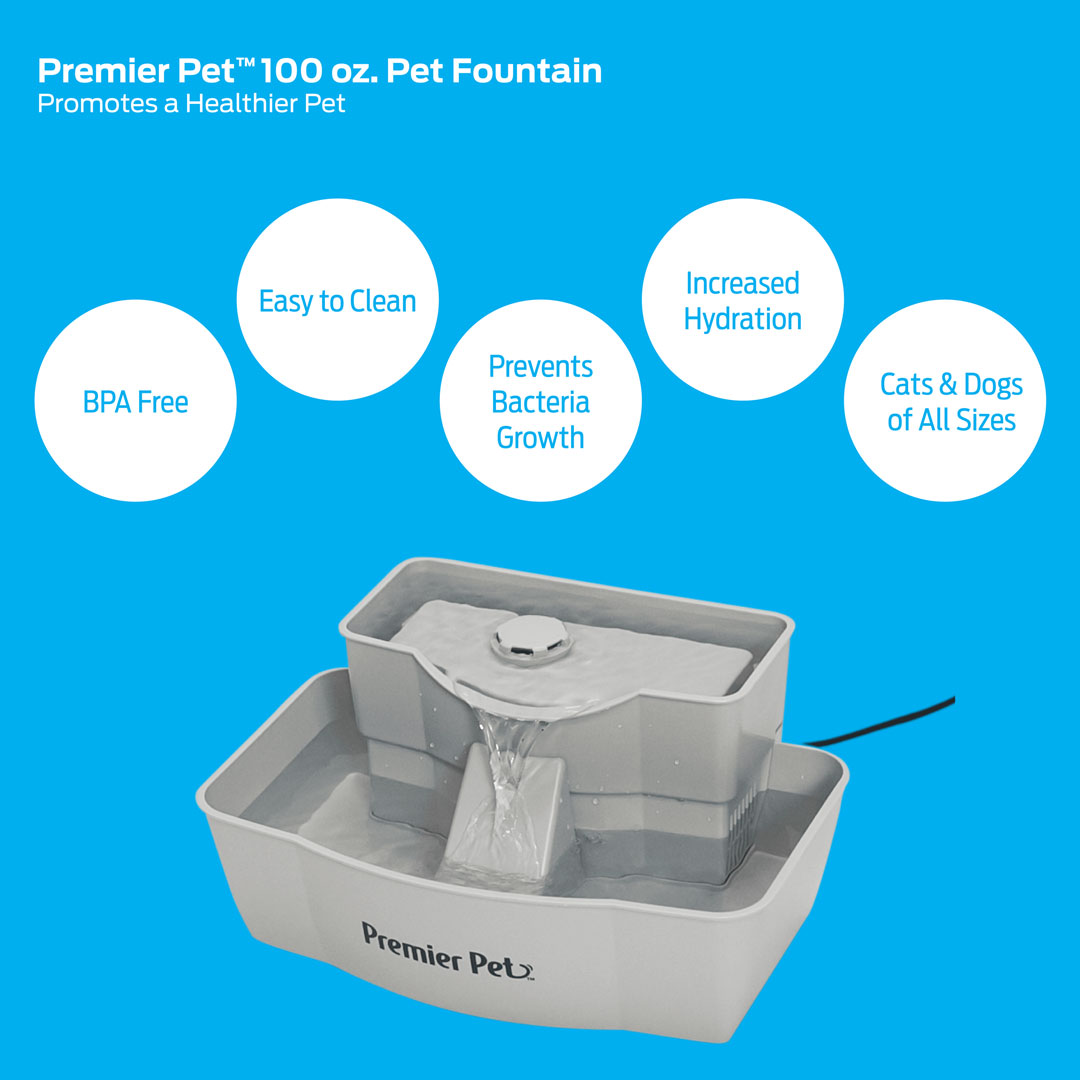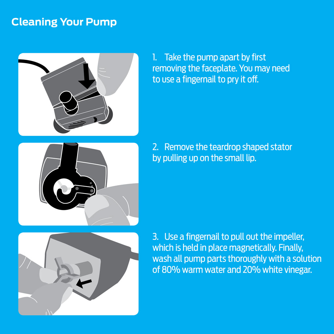 The Premier Pet® Replacement Pump circulates the water in your pet’s fountain, pushing the water through the fountain’s filtration system to keep the water fresh and clean. This pump includes the adaptor and fits easily into your Premier Pet Fountain. It can be used to completely replace your current pump or as a backup pump during cleanings. Regular cleaning of the pump will extend the lifetime of your fountain, ensuring your pet always has fresh, clean water.