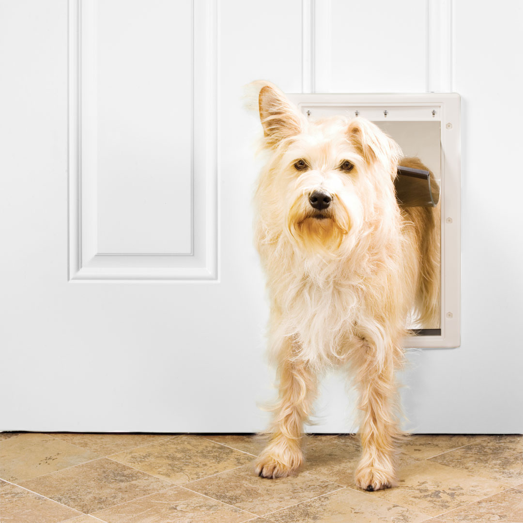 The Premier Pet® Plastic Pet Door gives your pet the freedom to come and go, even when you are not at home. The flexible, tinted flap is easily pushed open by your cat or dog and falls back into place using a magnetic closure. This helps keep the outside heat or cold out of your home, providing a higher level of energy efficiency. When it’s time for your pet to stay inside, simply snap the included closing cover onto the inside frame of the pet door. This simple DIY project will provide freedom your pet will love.