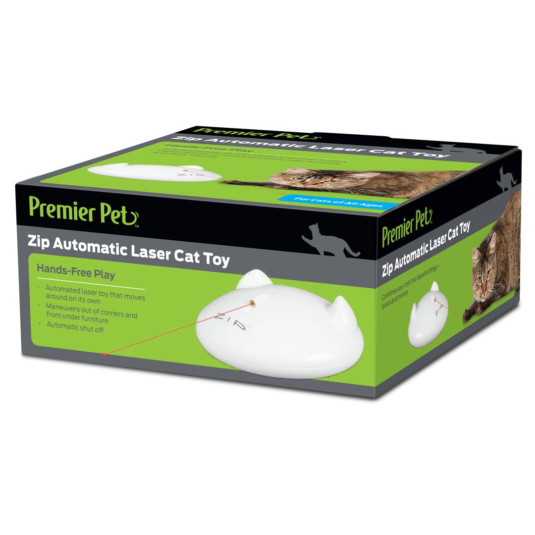 The Premier Pet® Zip Automatic Laser Cat Toy keeps your cat active and entertained by maneuvering around your home with a laser tail trailing behind it. After installing the batteries (not included), turn the toy on with the push of a button, and it will begin moving around on its own, finding its way around furniture and out of corners. The laser tail encourages your cat to chase and pounce as he/she tries to catch the red dot. After 10 minutes of playtime, the toy will automatically shut off to let your cat rest, and it can be turned back on at any time. By encouraging your cat to exercise and providing mental stimulation, this toy helps keep your cat happy and healthy.